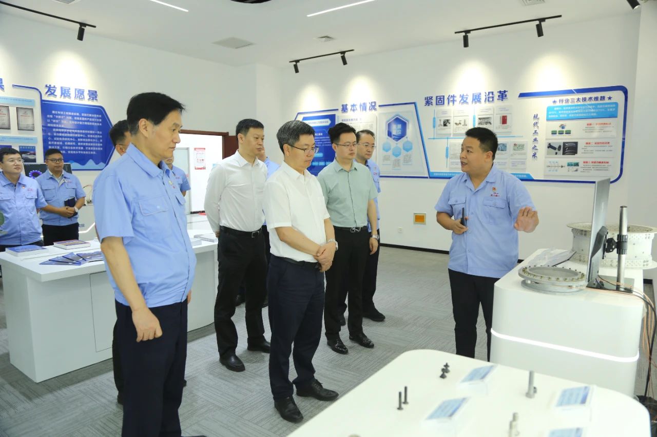 27日上午,陳錫明一行來到航天精工,深入航天精工研究院、機加鐓制車間、高端抽芯鉚釘自動化生產(chǎn)線等科研生產(chǎn)一線開展實地調(diào)研。陳錫明詳細(xì)了解了航天精工技術(shù)研發(fā)和產(chǎn)品配套等方面情況,聽取了航天精工關(guān)于生產(chǎn)經(jīng)營、發(fā)展規(guī)劃、黨的建設(shè)和巡視整改等方面的情況匯報。