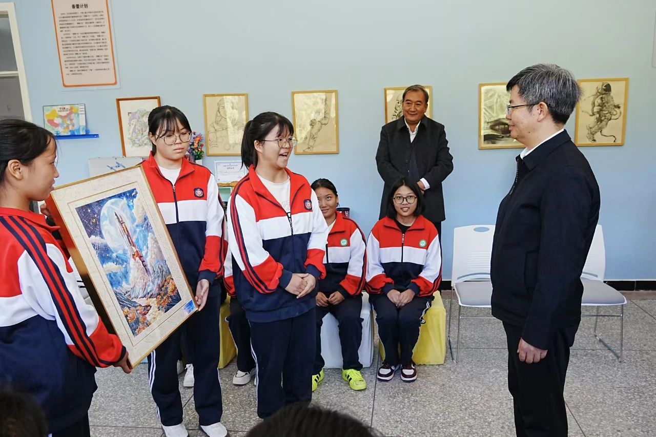 “春蕾計劃助學金給我的家庭緩解了壓力,今年夏天還有幸去了北京參加研學”,“在研學中了解了導彈和航天器的發(fā)展,航天人自強不息、迎難而上的精神讓我印象深刻,這給我高三的學習生活帶來力量”……在航天·筑夢女童成長空間站,春蕾女童分享了自己的心得和感悟,并將代表自己心意與祝福的航天主題繪畫作品贈送給航天科工。
