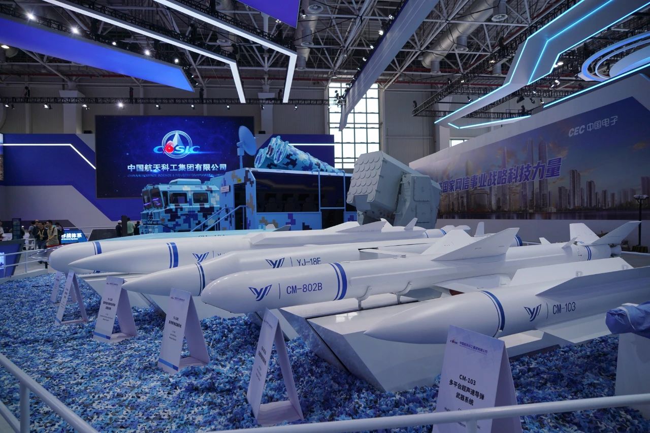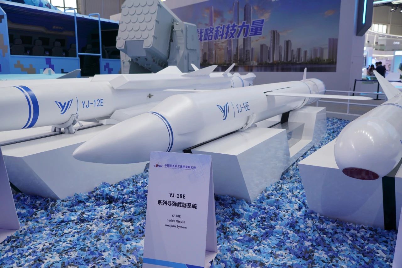 在第十五屆中國國際航空航天博覽會上,中國航天科工集團(tuán)有限公司展出了一體化海防武器系統(tǒng),YJ-12E、YJ-18E、CM-708UNB、CM-401等多款“明星裝備”組合亮相。