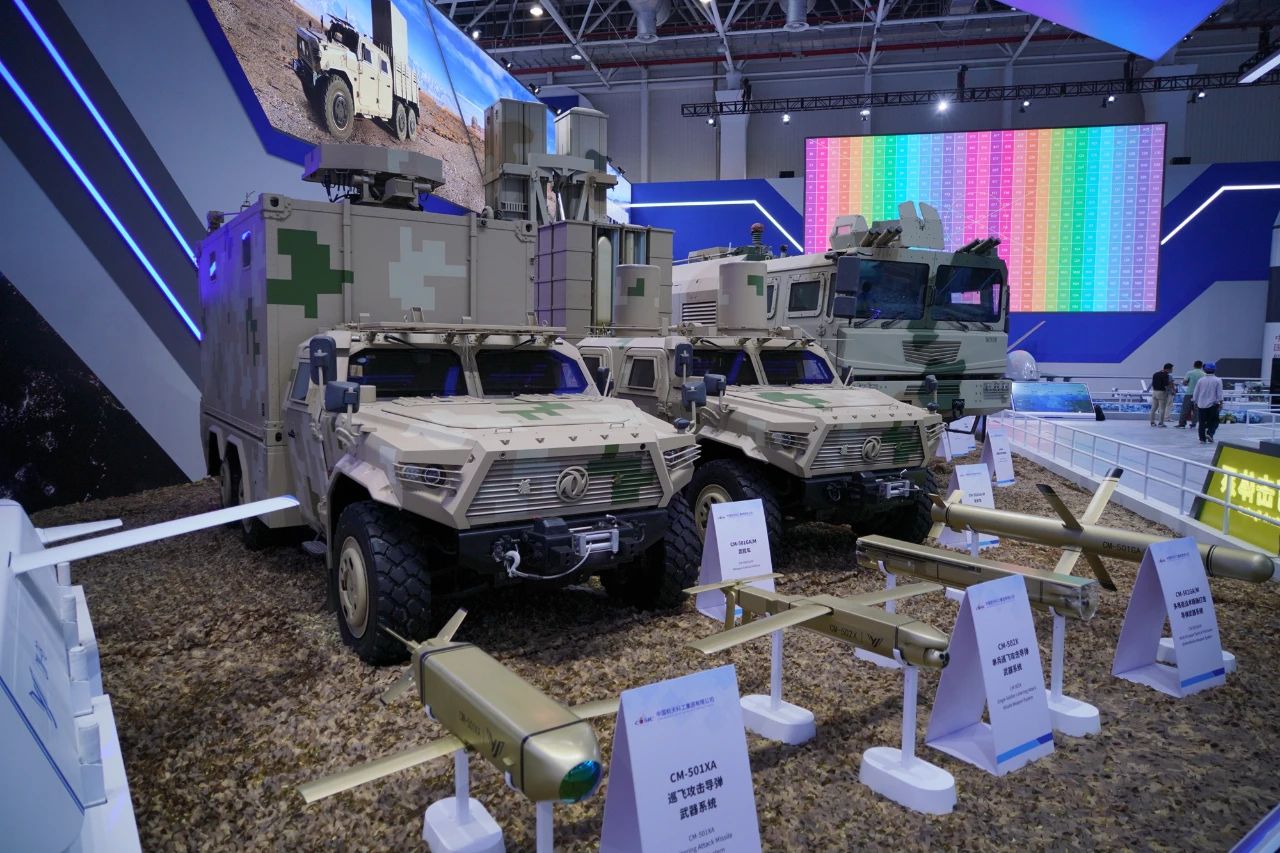 其中,CM-98隱身多用途導(dǎo)彈、CM-502X單兵巡飛攻擊導(dǎo)彈均為首次亮相。CM-98是根據(jù)國際市場需求研制的一型隱身多用途導(dǎo)彈武器系統(tǒng),可在防區(qū)外遂行打擊對方高價值目標(biāo),具有全天時、全天候使用,高隱身穿透、抗干擾突防、寬飛行包絡(luò)、高效能毀傷、易于維護(hù)保障等特點(diǎn)。CM-502X能夠高效打擊重型主戰(zhàn)坦克,具有靈巧打擊、多模式簡易發(fā)射等特點(diǎn)。