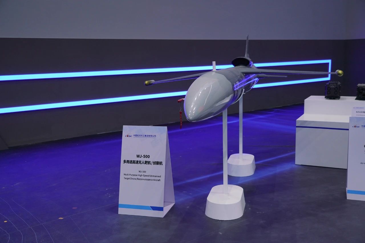 WJ-500無人機(jī)采用小型渦噴發(fā)動機(jī)作為動力裝置,具有作戰(zhàn)部署靈活、高通用性、使用維護(hù)簡便等顯著特點(diǎn),可搭載光電偵察、合成孔徑雷達(dá)等多種設(shè)備執(zhí)行區(qū)域偵察、目標(biāo)指示和毀傷效果評估等作戰(zhàn)任務(wù)。