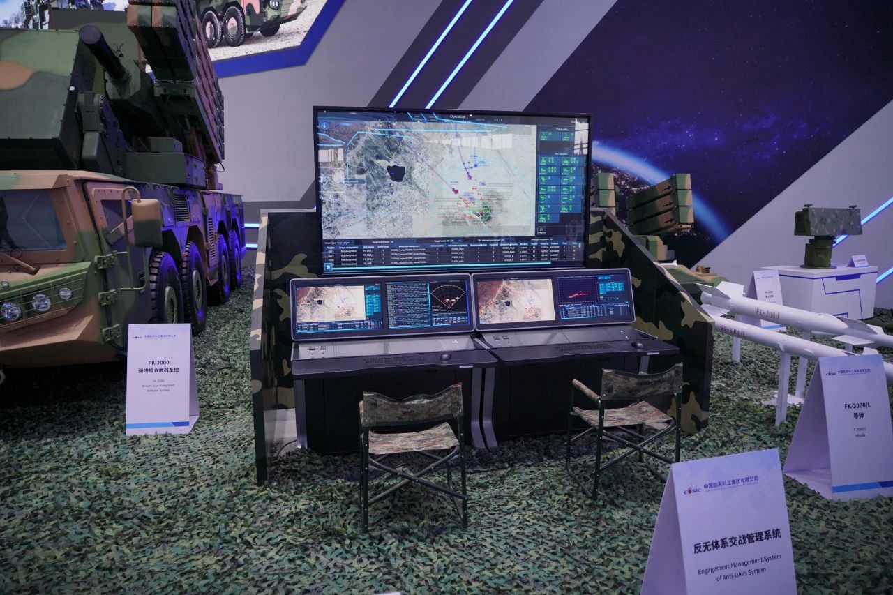 在中國航天科工集團(tuán)有限公司防空體系展區(qū),HQ-9BE遠(yuǎn)程防空武器系統(tǒng)、FD-2000A中遠(yuǎn)程防空武器系統(tǒng)、FK-3中遠(yuǎn)程防空武器系統(tǒng)、HQ-17AE近程防空武器系統(tǒng)等“明星裝備”煥新亮相。