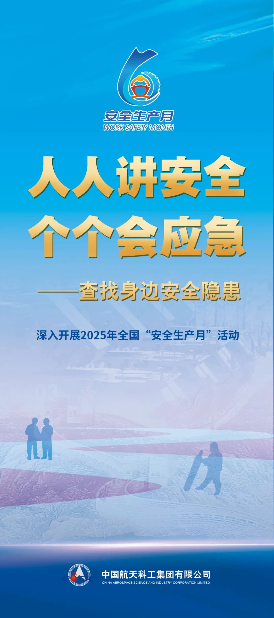 今年6月是第24個全國“安全生產(chǎn)月”,主題為“人人講安全、個個會應(yīng)急——查找身邊安全隱患”,6月16日為全國“安全宣傳咨詢?nèi)铡?。近日,中國航天科工集團(tuán)有限公司印發(fā)通知,對在全系統(tǒng)開展好2025年全國“安全生產(chǎn)月”活動作出安排部署。