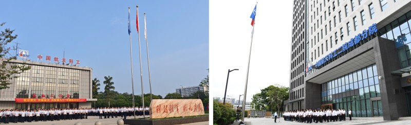 伴隨著雄壯的國歌,鮮艷的五星紅旗冉冉升起,隨著激昂的航天科工之歌,集團公司司旗飄揚空中。全場干部職工莊嚴肅立,行注目禮。