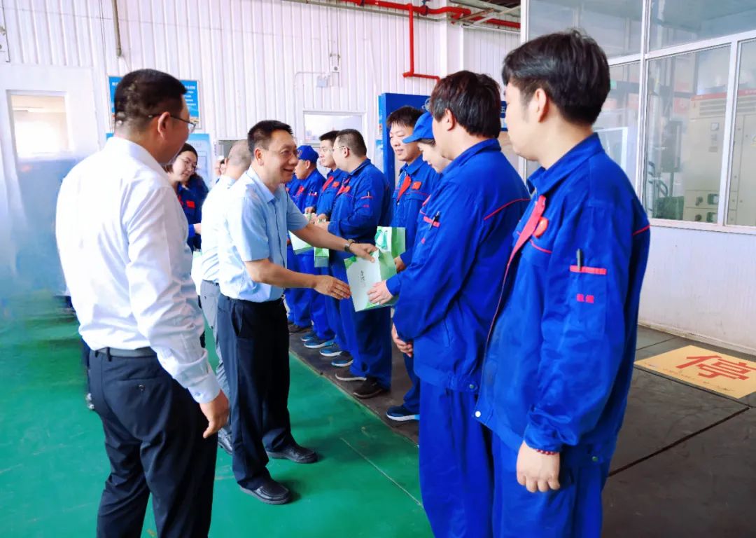 高溫下作業(yè)的科研生產(chǎn)一線干部職工始終牽動著各級黨組織的心。7月23日,中國航天科工三院領導同院本部相關部門走進159廠熱處理廠房、物資部下料車間,來到生產(chǎn)車間、操作臺前、職工中間,將解暑飲品送到高溫作業(yè)現(xiàn)場,把清涼送到一線,也帶去院黨委的關心關懷。