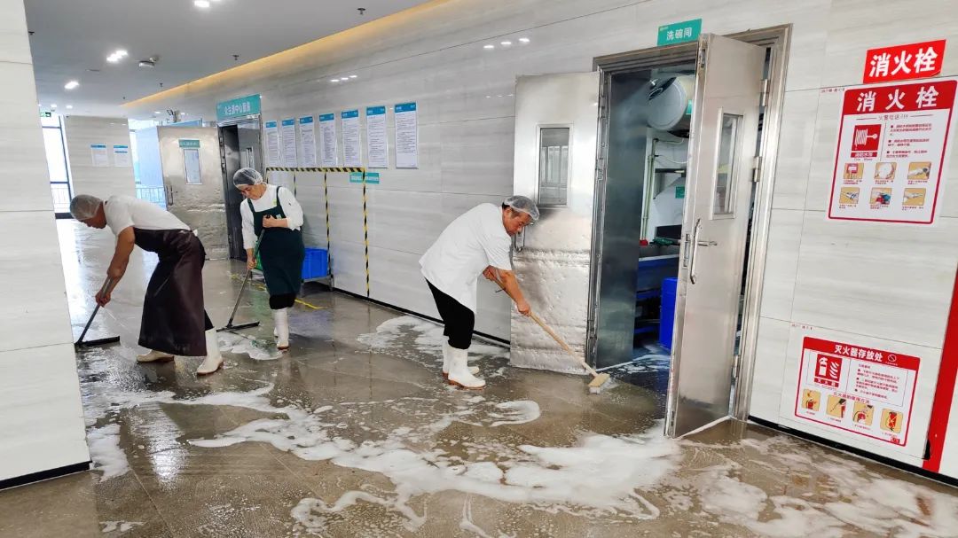 在穩(wěn)定生產(chǎn)的背后,也始終離不開默默堅(jiān)守崗位后勤人員的付出。安全保障部協(xié)調(diào)安保、物業(yè)、后勤等服務(wù)保障人員集中清洗生活用水水箱,保證水質(zhì)達(dá)標(biāo)。對(duì)園區(qū)消防系統(tǒng)例行檢查,現(xiàn)場(chǎng)排查故障,保證消防系統(tǒng)正常運(yùn)轉(zhuǎn)。物業(yè)、安保常態(tài)化服務(wù),提供整潔、舒適、安全的工作環(huán)境。食堂提前備餐,準(zhǔn)時(shí)準(zhǔn)點(diǎn)供應(yīng)可口的飯菜。
