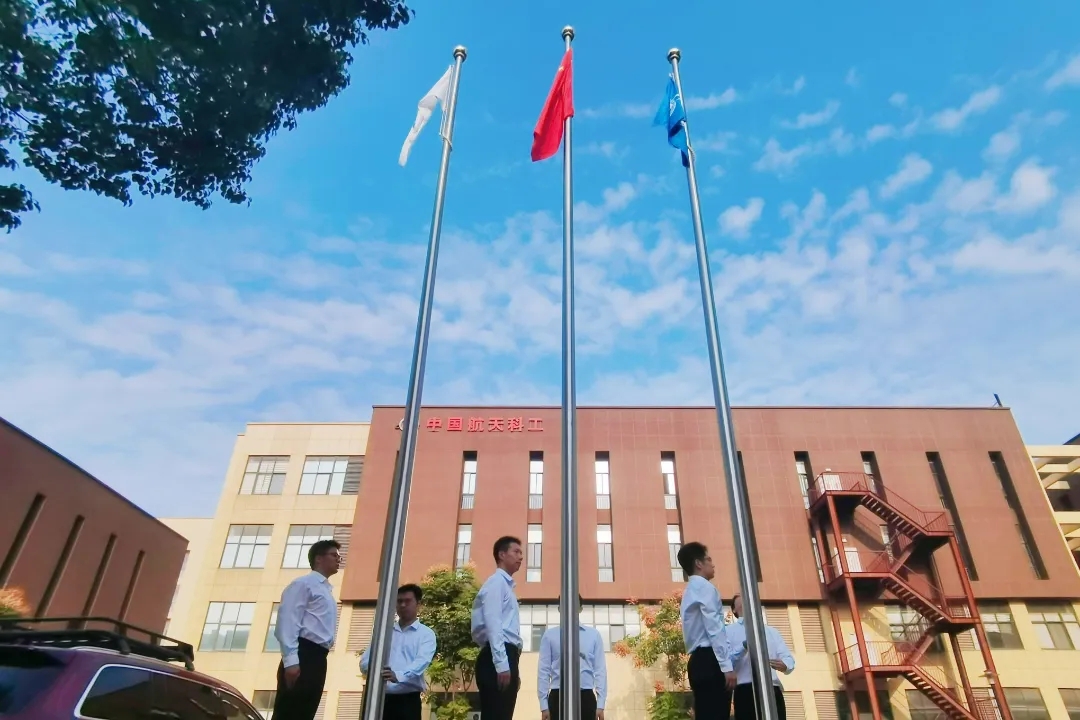 伴隨著國(guó)歌的雄壯旋律,鮮艷的五星紅旗冉冉升起,參加升旗儀式的干部職工面向國(guó)旗行注目禮、高唱國(guó)歌,送出對(duì)祖國(guó)母親的深深祝福。在集團(tuán)公司司歌聲中,司旗迎風(fēng)飄揚(yáng),大家以昂揚(yáng)的斗志,表達(dá)對(duì)航天事業(yè)的熾熱情懷。