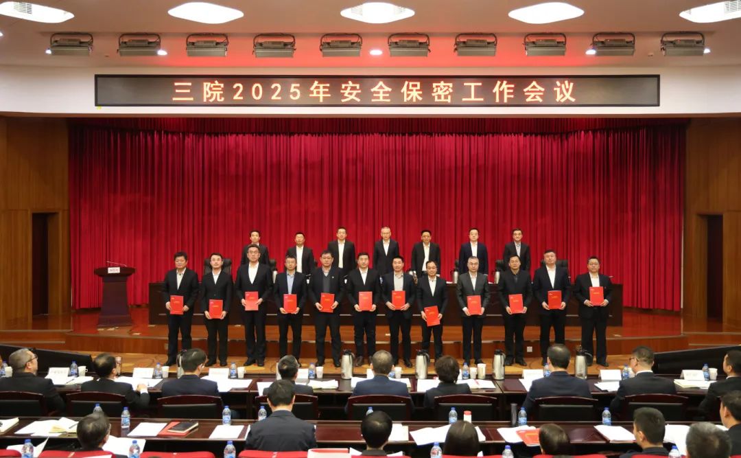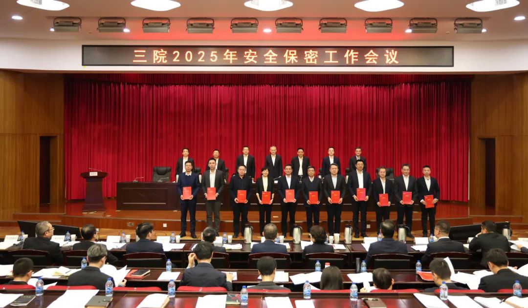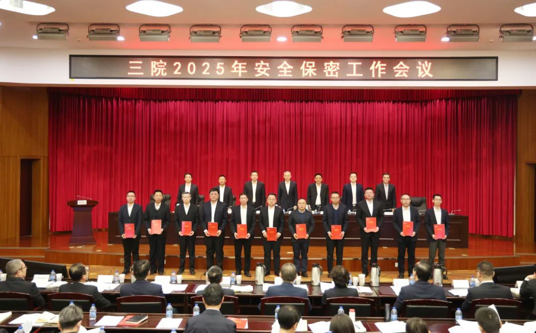 會(huì)議作了題為《強(qiáng)化問(wèn)題導(dǎo)向 提升治理能力 以高水平安全促進(jìn)高質(zhì)量發(fā)展》的安全保密工作報(bào)告,宣讀了三院2024年度安全生產(chǎn)、保密、保衛(wèi)工作先進(jìn)表彰的決定,通報(bào)了三院2024年《安全保密責(zé)任書(shū)》考核完成情況,并作2025年《安全保密責(zé)任書(shū)》說(shuō)明。院領(lǐng)導(dǎo)向三級(jí)單位黨政主要負(fù)責(zé)人頒發(fā)了2025年《安全保密責(zé)任書(shū)》。