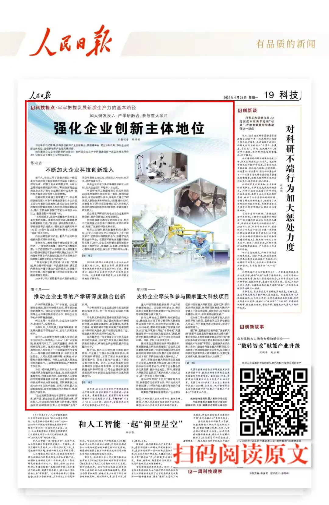 4月21日,《人民日?qǐng)?bào)》科技視點(diǎn)·牢牢把握發(fā)展新質(zhì)生產(chǎn)力的基本路徑系列報(bào)道以《強(qiáng)化企業(yè)創(chuàng)新主體地位》為題,聚焦相關(guān)企業(yè)創(chuàng)新團(tuán)隊(duì),探索如何激發(fā)企業(yè)自主創(chuàng)新的內(nèi)生動(dòng)力,如何讓企業(yè)在產(chǎn)學(xué)研融通創(chuàng)新中真正發(fā)揮主導(dǎo)作用。航天三江銳科激光的有關(guān)經(jīng)驗(yàn)受到關(guān)注。