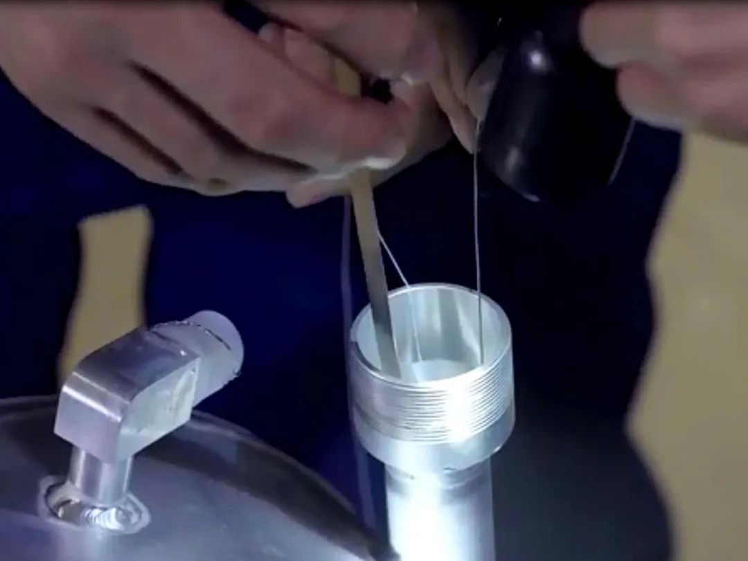 絕不能讓油標(biāo)再掉下去!李軍急中生智,讓同事用0.8毫米的鉛封絲、蠟綁線拴了一個(gè)活扣,一只手拿著U型的細(xì)鐵絲順下去,再繞過(guò)油標(biāo)提起、捆住、拽緊,再將自制工具和油標(biāo)慢慢分開(kāi)。