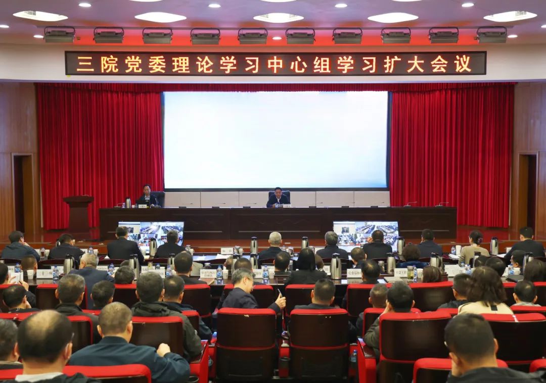三院全體在家院領(lǐng)導(dǎo)、本部各部門(mén)負(fù)責(zé)人,院屬單位領(lǐng)導(dǎo)班子成員,部分單位相關(guān)部門(mén)負(fù)責(zé)人等300余人在主會(huì)場(chǎng)和視頻分會(huì)場(chǎng)參加學(xué)習(xí)。三院黨委書(shū)記施毅主持學(xué)習(xí)會(huì)。