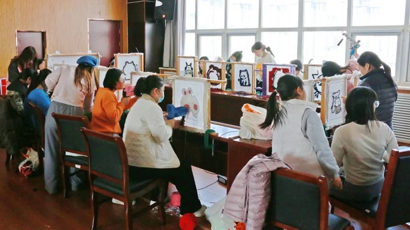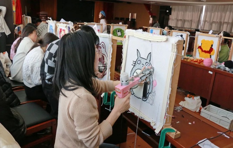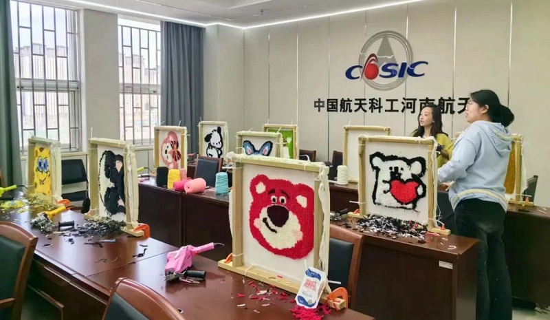 3月8日,為增加節(jié)日氣氛,展現(xiàn)新時(shí)代巾幗風(fēng)采,河南航天本部工會(huì)開展了慶?!叭恕眹H婦女節(jié)簇絨毛毯DIY活動(dòng)。隨著機(jī)器響起,映入眼簾的是女職工拿起簇絨槍在一張簇絨布上扎扎戳戳。在老師的指導(dǎo)下,大家逐漸找到訣竅,投影描繪、挑選毛線、運(yùn)作簇絨槍、刷乳膠貼布、修整鏟平……簇絨槍“突突”的聲音和大家驚喜歡快的談笑聲交織著,奏出一曲明快奔放地交響樂。經(jīng)過不懈的努力,心儀的圖案也一點(diǎn)點(diǎn)變成柔軟的展現(xiàn),琳瑯滿目、豐富多彩。