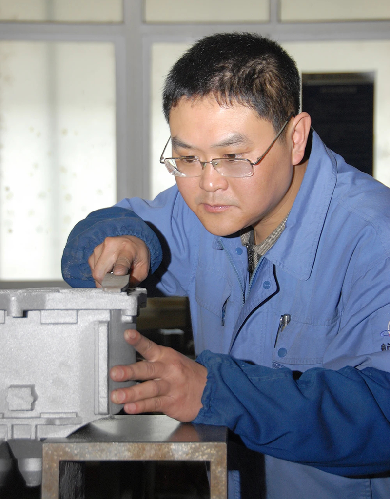 為攻克一產(chǎn)品技術(shù)難題,在設(shè)計(jì)方案論證初期,陳斌利用自身豐富的鉗工理論知識(shí)及實(shí)踐經(jīng)驗(yàn),向總體設(shè)計(jì)師提出了部分優(yōu)化意見,達(dá)到了優(yōu)化產(chǎn)品結(jié)構(gòu),降低產(chǎn)品生產(chǎn)加工難度及生產(chǎn)成本的效果。