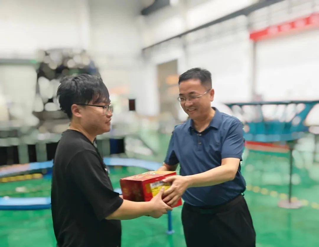 7月8日,航天三江黨委書記、董事長高輝文,黨委委員、總會計師弓興隆前往快舟產(chǎn)業(yè)園慰問高溫下奮戰(zhàn)一線的快舟試驗隊員和各項目人員。