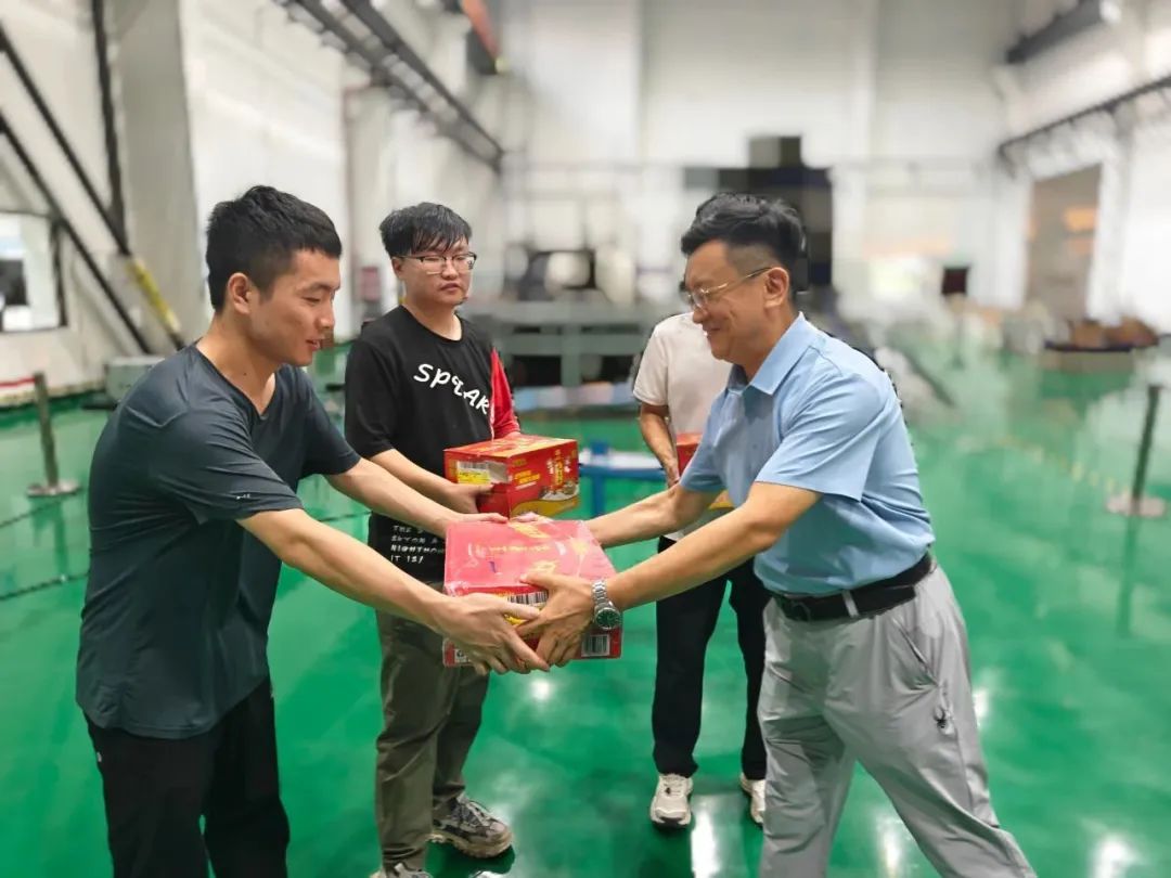 近日,火箭公司開展“夏日送清涼”慰問活動,為奮戰(zhàn)在一線的職工送去清涼飲品、防暑物資,并提醒大家注意勞逸結(jié)合,做好防護,確保安全生產(chǎn)。(圖/張煒梓 文/段淑婧)