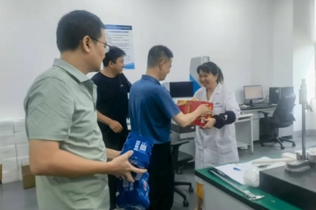 7月15日,新材料院黨總支書記、董事長一行前往常德產(chǎn)業(yè)園和長沙檢驗室慰問奮斗在一線的職工,向他們致以親切的問候,給他們送去涼茶、防暑藥品等物資,并代表新材料院黨總支和工會感謝他們?yōu)樾虏牧显号ぬ澝摾龅呐拓暙I。